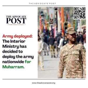 Conflict Zones and Peacekeeping Army deployed: The Interior Ministry has decided to deploy the army nationwide for Muharram News Desk Read More »